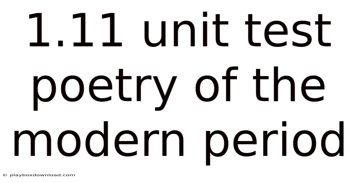 Q: How should I prepare for the 1.11 unit test? A: To prepare for the 1.11 unit test, focus on understanding the historical and cultural context of the modern period, analyzing key poems for their use of literary devices and themes, and practicing close reading and comparative analysis. Familiarize yourself with the works of major modernist poets such as T.S. Eliot, Ezra Pound, and W.B. Yeats.