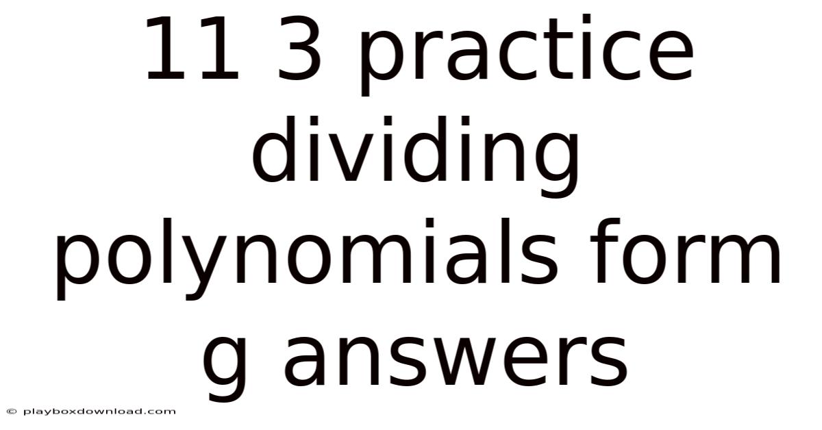 11 3 Practice Dividing Polynomials Form G Answers