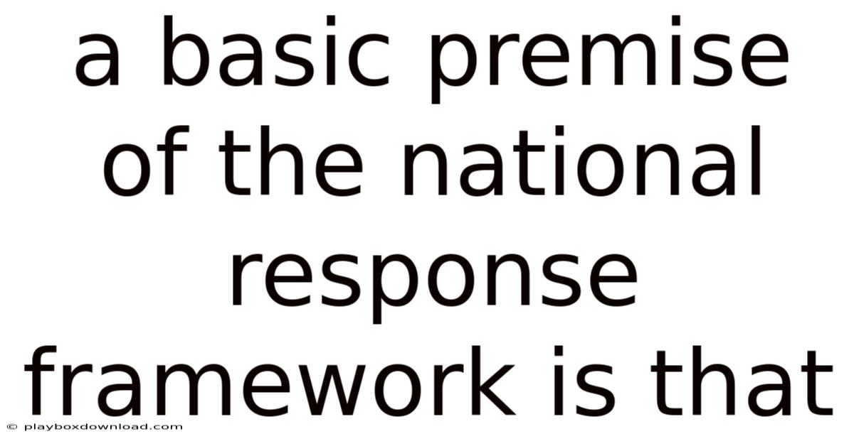 A Basic Premise of the NationalResponse Framework Is That Effective Emergency Response Depends on a Scalable, Flexible, and Adaptable Approach That Unites All Partners