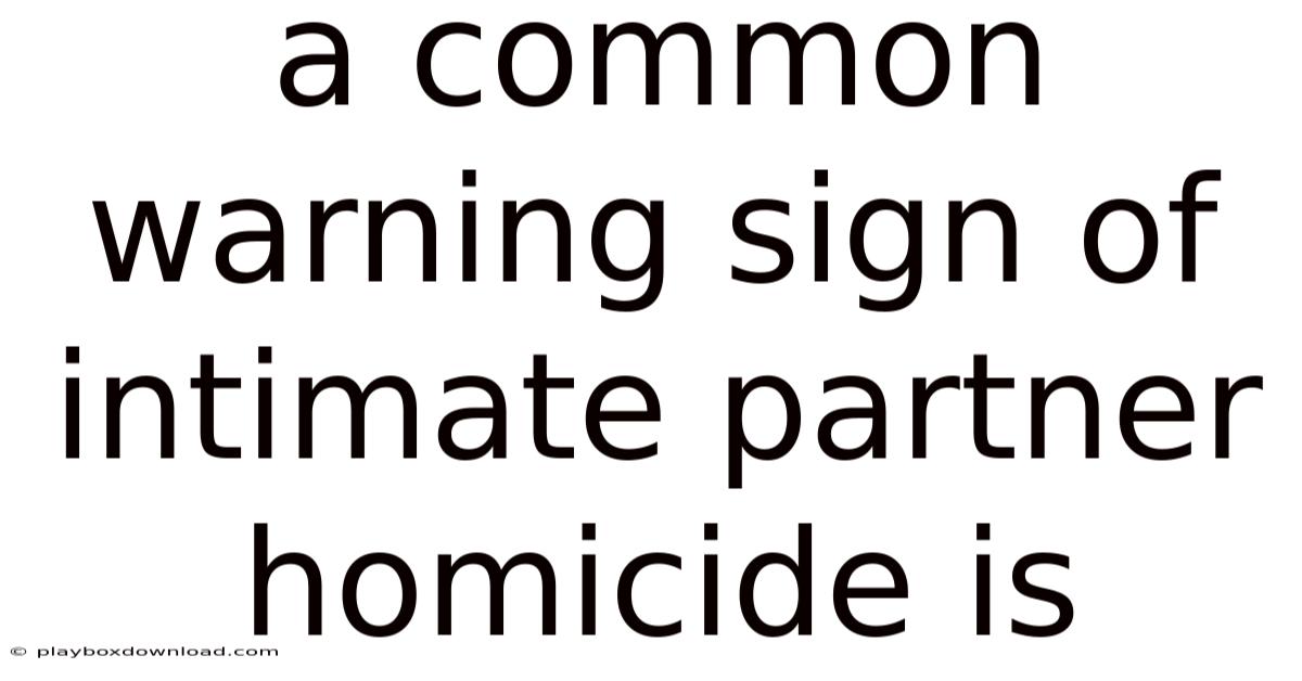 The most common warning sign of intimate partner homicide involves an escalating pattern of controlling and possessive behavior that progressively strips the victim of autonomy, support, and hope. This control, combined with factors like prior violence, stalking, threats, and access to weapons, creates a dangerous situation that can culminate in tragedy.