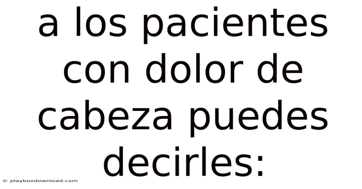 - "Si el patrón de tus dolores de cabeza cambia significativamente o empeoran con el tiempo, necesitamos realizar estudios adicionales."