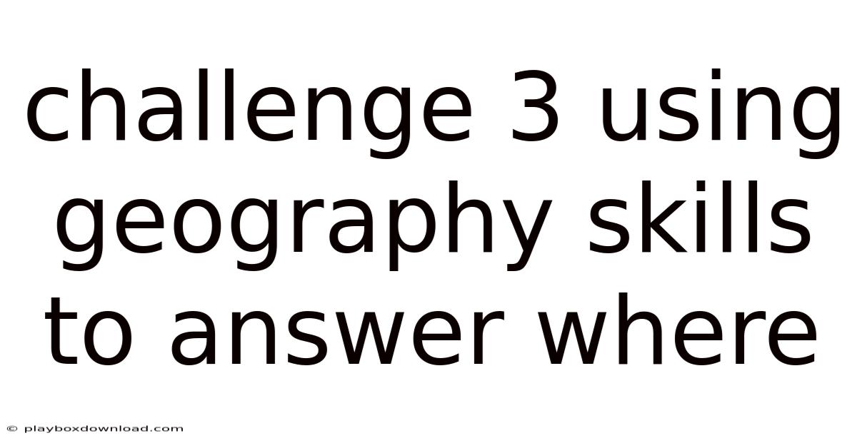 Answering “where” is the cornerstone of geographic inquiry. That said, by mastering spatial thinking, cartographic literacy, GIS, remote sensing, and field observation, you transform a simple location question into a strong, evidence‑based answer. Think about it: whether you are a student tackling a classroom challenge, a planner designing resilient infrastructure, or a citizen curious about the world around you, the systematic approach outlined in Challenge 3 equips you with the confidence to pinpoint places accurately, communicate findings clearly, and appreciate the dynamic nature of Earth’s geography. Embrace the tools, respect the data, and let every “where” you answer deepen your connection to the planet’s involved tapestry.