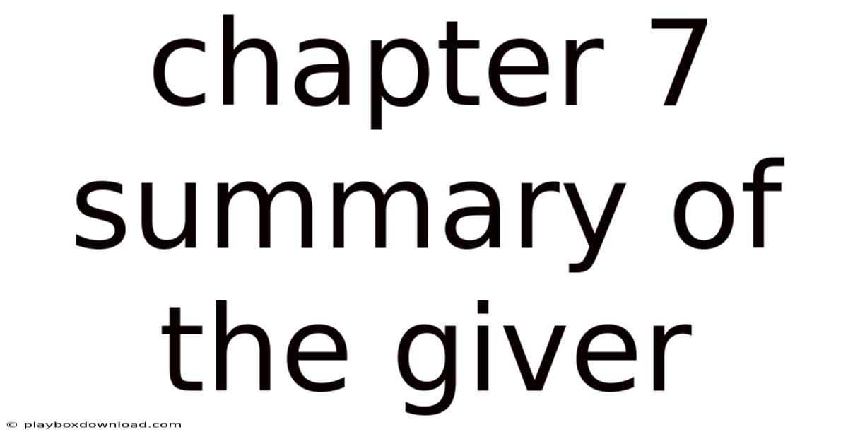 Chapter 7 Summary Of The Giver