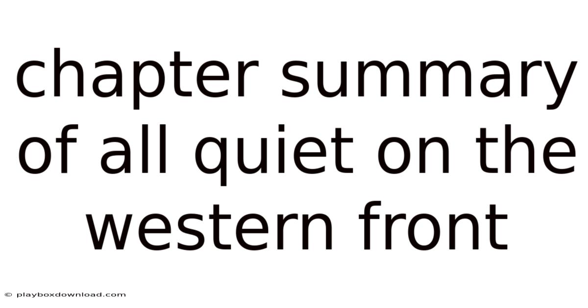 Chapter Summary Of All Quiet On The Western Front