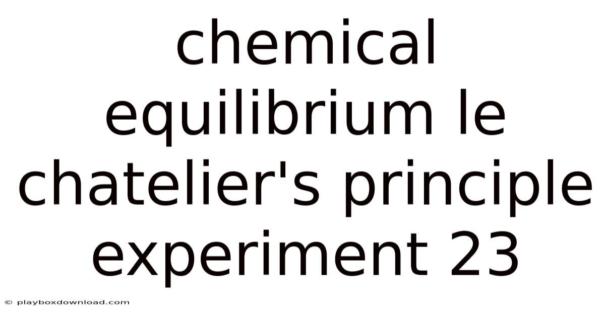 Chemical Equilibrium Le Chatelier's Principle Experiment 23