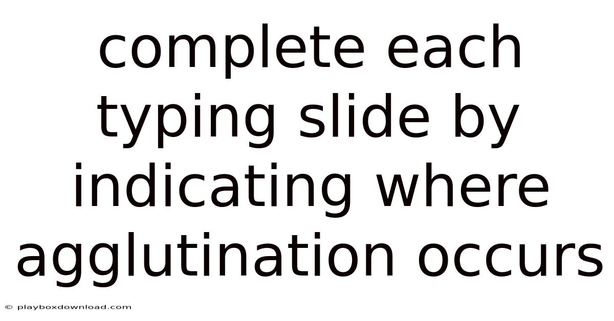 Complete Each Typing Slide by Indicating Where Agglutination Occurs to ensure accurate blood transfusion and serological testing. This process is fundamental in hematology and immunohematology, serving as a critical step in identifying blood groups and detecting antibodies. Agglutination, the clumping of particles, is the visible endpoint that confirms a specific antigen-antibody reaction. Understanding precisely where this reaction occurs on a typing slide allows laboratory professionals and students to interpret results correctly, avoid fatal transfusion errors, and validate the integrity of the blood sample being analyzed.