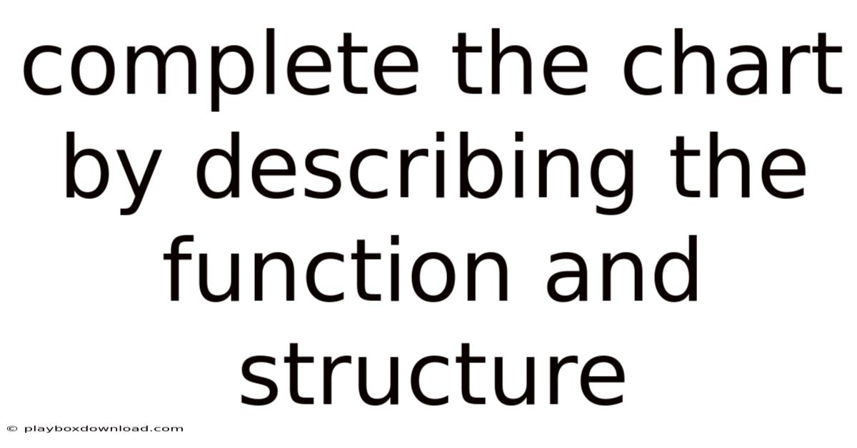 The instruction to complete the chart by describing the function and structure is not merely an exercise in data entry; it is an exercise in synthesis. Here's the thing — a chart serves as a skeletal framework, organizing information into rows and columns. The "function" represents the why—the role the entity plays within a larger system, its purpose, or its behavior. The "structure" represents the how—the physical composition, the arrangement of parts, or the logical sequence that enables that function. To complete the chart effectively, one must move beyond simple identification and engage in analytical reasoning. So naturally, you must become an interpreter, translating observable characteristics or defined parameters into meaningful explanations. This skill is vital across disciplines, from science and engineering to business and the humanities, as it fosters a deep, interconnected understanding rather than rote memorization.