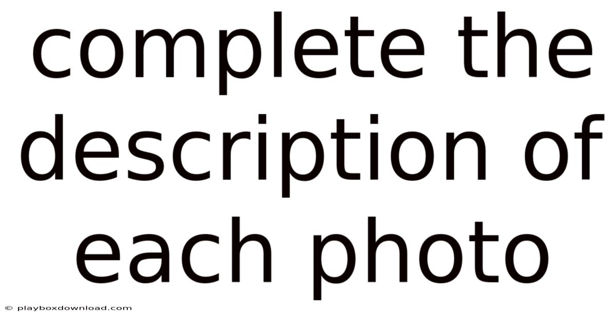 The act of completing the description of each photo is more than a technical exercise; it is an art of storytelling through visuals. A well-crafted photo description transforms a static image into a dynamic narrative, allowing viewers to connect with the subject on a deeper level. This process involves analyzing elements like composition, context, emotions, and technical details, ensuring that every aspect of the photo is captured and communicated effectively. Whether you are a photographer, content creator, educator, or someone simply aiming to enhance your ability to convey meaning through images, understanding how to thoroughly describe a photo is essential. By mastering this skill, you not only improve your ability to interpret visuals but also empower others to engage with the imagery in a meaningful way.