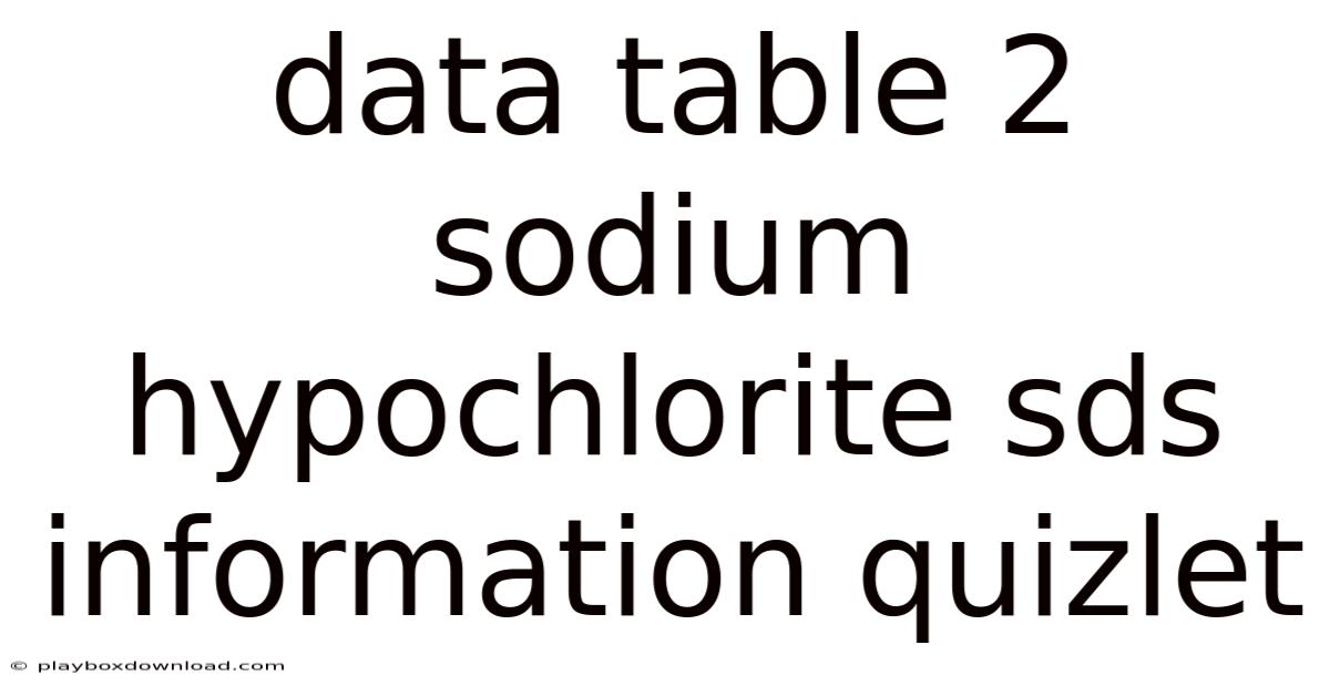 Sodium hypochlorite (NaOCl) is one of the most widely used disinfectants, bleaching agents, and oxidizing chemicals in laboratories, industry, and households. Still, understanding its Safety Data Sheet (SDS) is essential for anyone who handles the compound, whether you are a chemistry student preparing for an exam, a lab technician, or a cleaning‑service manager. Data Table 2 in many SDS documents aggregates the most critical hazard, handling, and physical‑property information in a concise, easy‑to‑read format. This article breaks down every row of Data Table 2 for sodium hypochlorite, explains the scientific background behind each entry, and offers practical tips for safe storage, use, and disposal. By the end of the guide, you will be able to interpret the table confidently, answer quiz‑style questions on platforms like Quizlet, and apply the knowledge to real‑world scenarios.