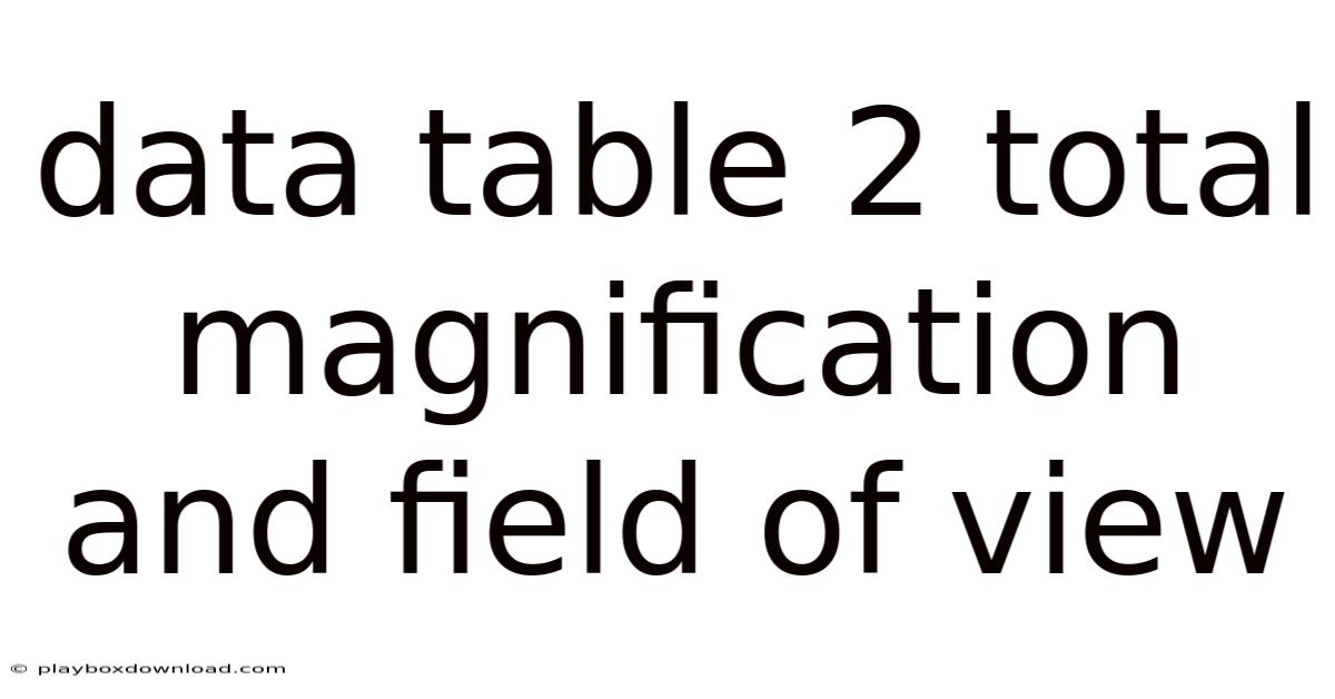 Understanding how to calculate and interpret total magnification and field of view is essential when working with microscopes, especially when documenting observations in a laboratory notebook or digital database. Data Table 2 provides a structured way to record these parameters, allowing researchers, educators, and students to compare specimens, calibrate equipment, and produce reproducible results. This article walks you through the concepts, the mathematics behind them, and practical steps for using Data Table 2 effectively, ensuring you can extract meaningful information from every slide you examine Most people skip this — try not to. And it works..