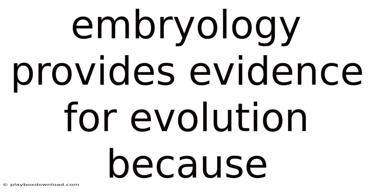 Embryology providesevidence for evolution because it reveals conserved developmental pathways that mirror the shared ancestry of diverse organisms, illustrating how subtle changes in timing and regulation can generate the remarkable diversity of life we observe today.