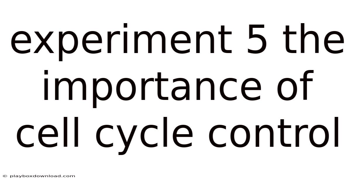 Experiment 5 The Importance Of Cell Cycle Control