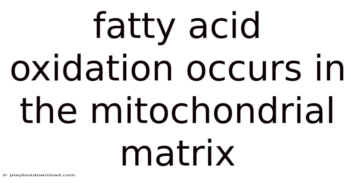 Fatty acid oxidation represents a cornerstone of cellular metabolism, a process that intricately intertwines biochemical pathways with the very essence of energy availability. Such processes demand meticulous coordination, ensuring that energy derived from fats is efficiently converted into usable forms like ATP, thereby supporting cellular activities from basic cellular functions to high-energy tasks. This metabolic pathway, essential for sustaining life under varying physiological conditions, operates predominantly within the mitochondrial matrix, a structural compartment within eukaryotic cells that serves as the central hub for energy production. Because of that, the mitochondrial matrix, rich in enzymes and organelles, provides the ideal environment where fatty acids are metabolized into molecules capable of fueling the body’s demands. On top of that, the mitochondrial matrix thus acts as both a site of transformation and a regulator, orchestrating the flow of energy resources while maintaining cellular integrity. On the flip side, through this layered process, cells confirm that even under stress or fasting conditions, they retain sufficient reserves to meet their energy needs, highlighting the adaptability inherent in biological systems. This symbiotic relationship between cellular structures and biochemical reactions underscores the sophistication of biological systems, where precision and efficiency converge to sustain life. Worth adding: understanding this process reveals not only the complexity of cellular respiration but also the critical role that mitochondria play in maintaining cellular homeostasis. Such resilience is fundamental to survival, making fatty acid oxidation a cornerstone of metabolic health and longevity That's the part that actually makes a difference..
