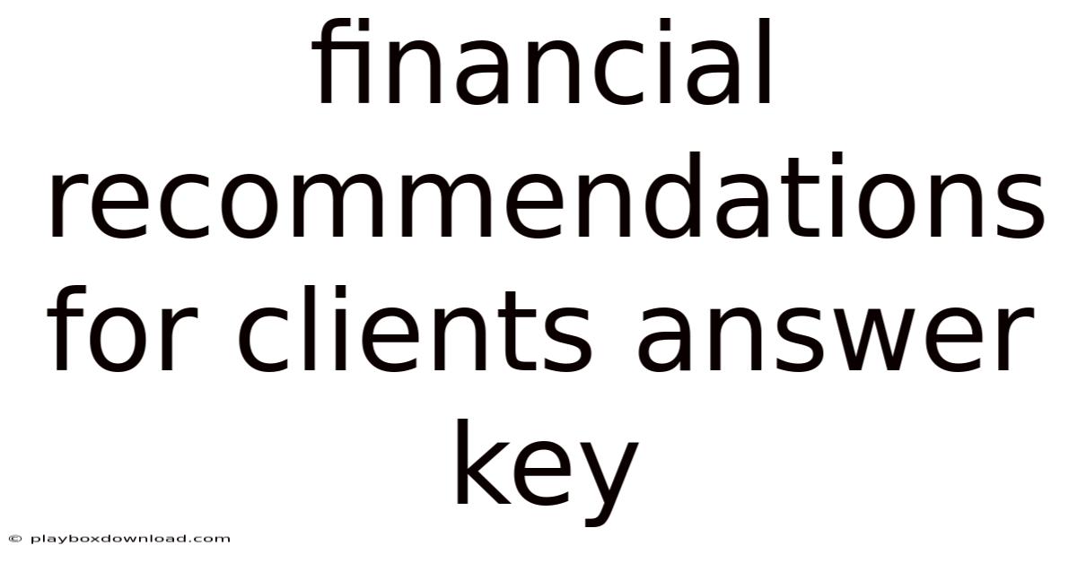 Financial Recommendations For Clients Answer Key
