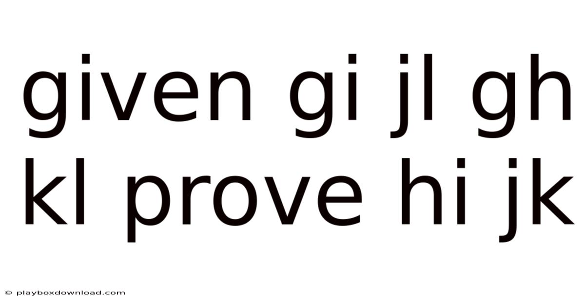 In the world of logical reasoning and geometric proofs, the statement given gi jl gh kl prove hi jk represents a classic exercise in deductive thinking. The journey from the initial givens to the desired conclusion is not just about memorizing formulas; it is about understanding the spatial relationships and applying principles of congruence, substitution, and segment addition. Think about it: this type of problem requires you to start with a set of predefined relationships between points and segments, then systematically derive a new relationship using established rules of logic. Mastering this process builds a strong foundation for more advanced geometry and formal proof writing.