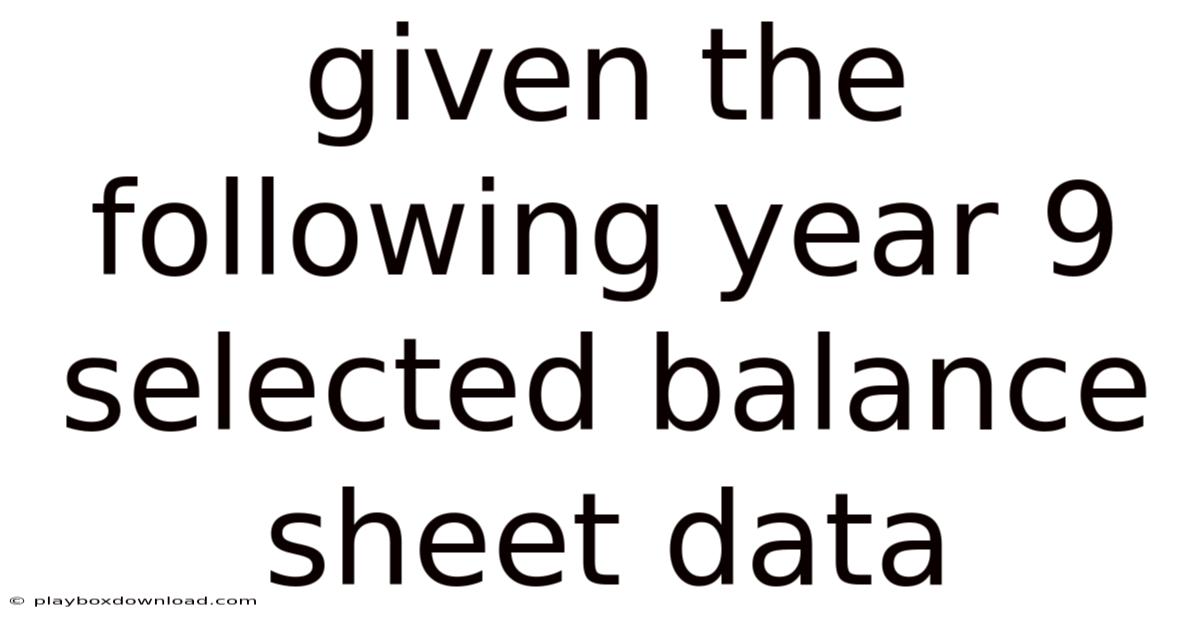 Given The Following Year 9 Selected Balance Sheet Data