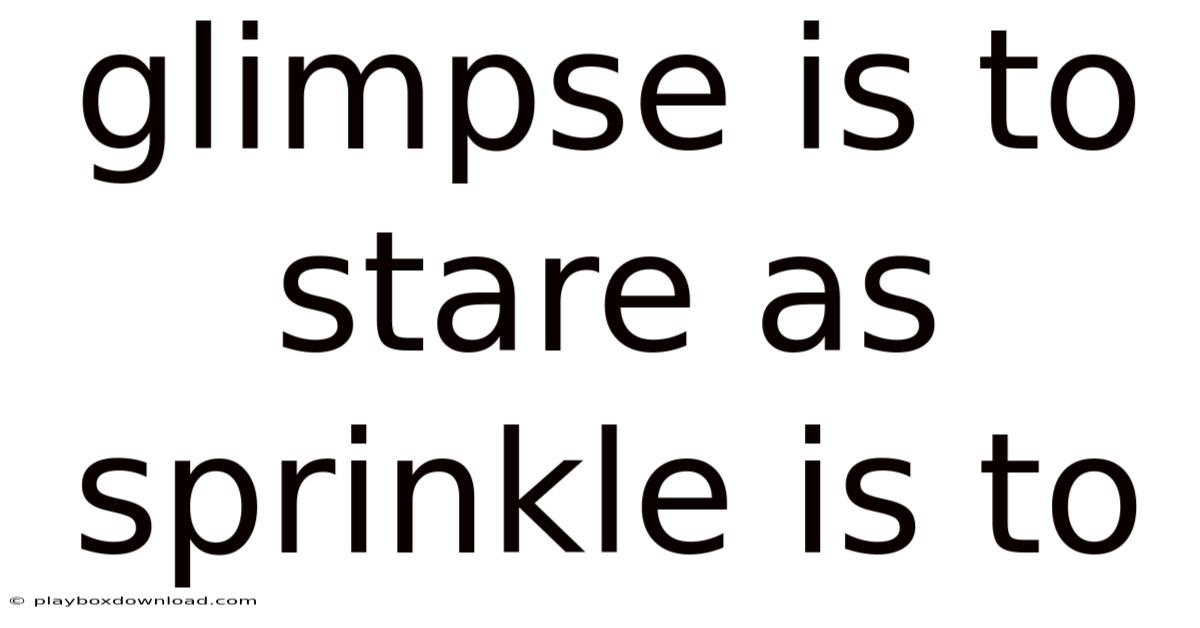 A glimpse and a stare illustrate a fundamental contrast between brevity and duration, just as a sprinkle and a shower reveal a similar shift from light to heavy. This analogy—glimpse is to stare as sprinkle is to shower—captures how a modest, fleeting action can evolve into a more intense, sustained one. By unpacking the relationship, we can better appreciate everyday language, improve communication, and even sharpen our observational skills.