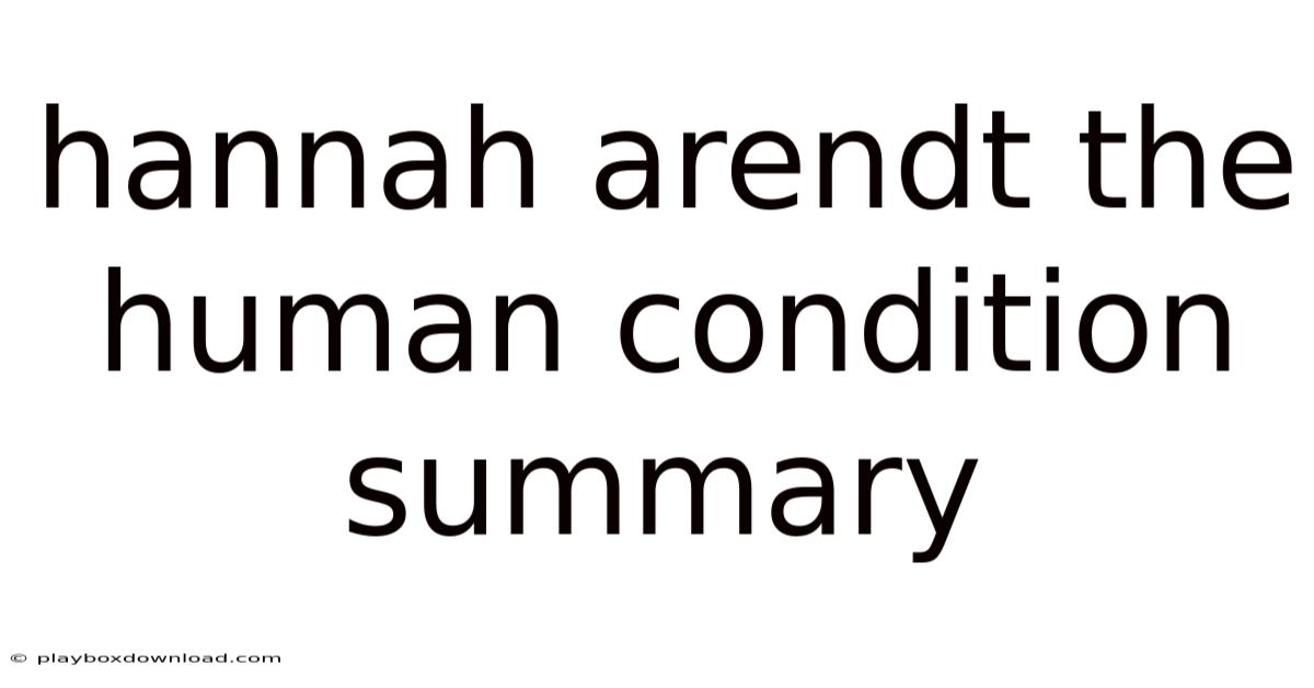 Hannah Arendt The Human Condition Summary