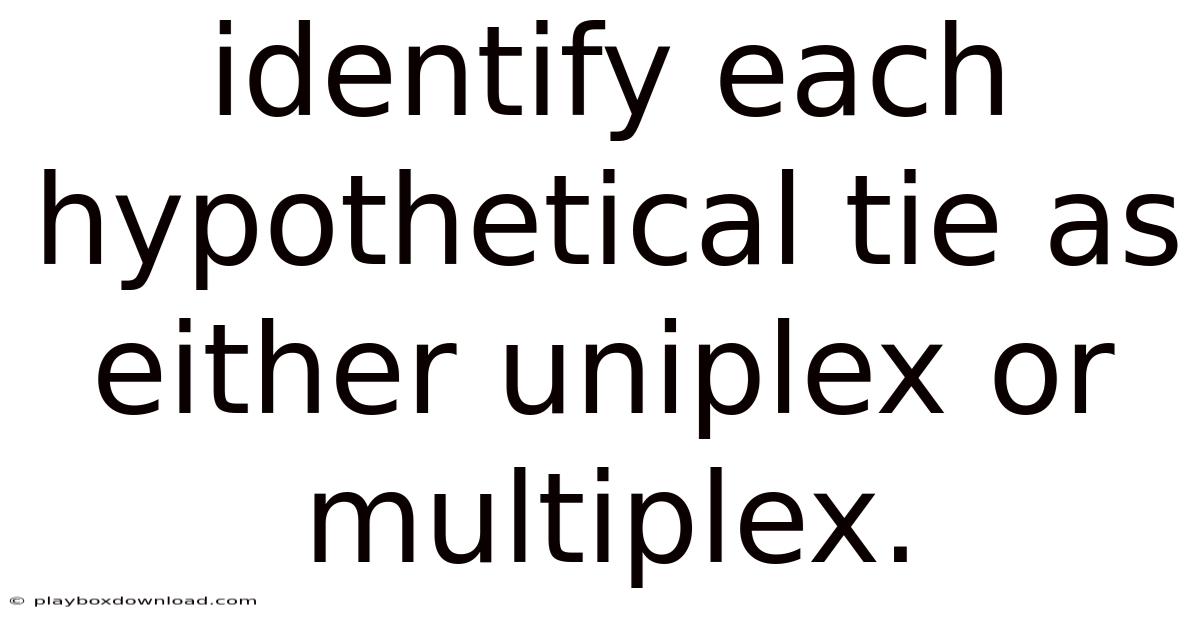 In the study of sociology and social network analysis, the ability to identify each hypothetical tie as either uniplex or multiplex is fundamental to understanding the depth and complexity of human relationships. While a uniplex tie represents a connection based on a single shared activity or role, a multiplex tie involves multiple overlapping roles and interactions. Distinguishing between these two types of social connections allows researchers and students to analyze how information flows, how social support is provided, and how communities maintain cohesion in various social structures That alone is useful..