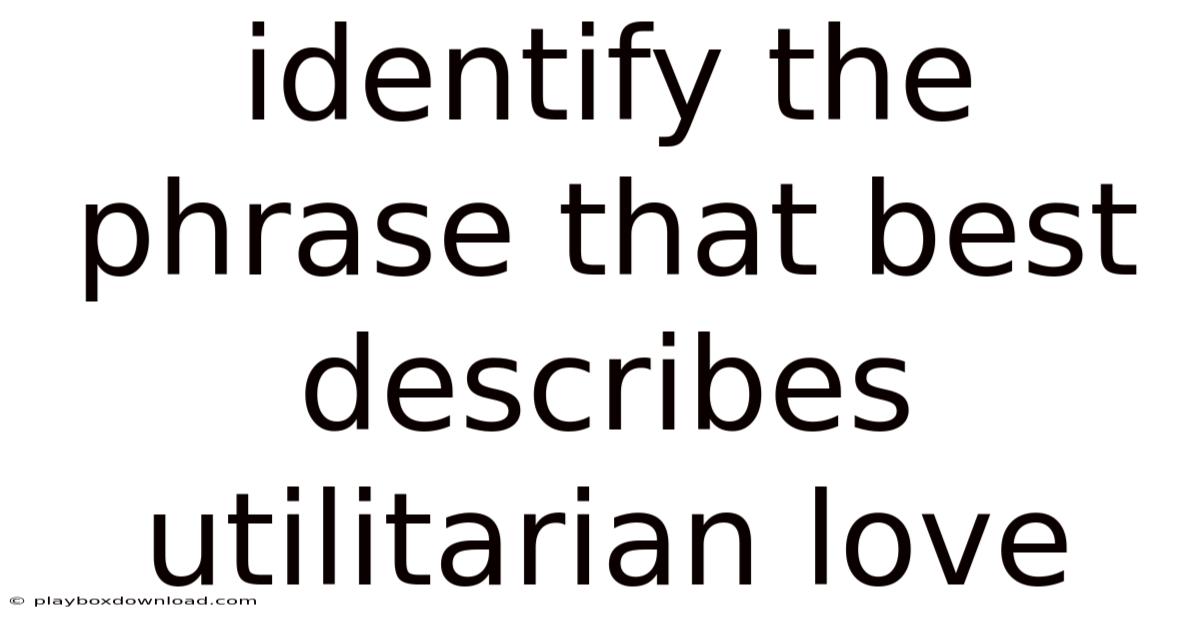 The phrase "altruistic love" is often used to describe utilitarian love. Altruism is the selfless concern for the well-being of others, which aligns closely with the principles of utilitarian love. That said, when individuals practice altruistic love, they act in ways that benefit others, often without expecting anything in return. This selfless behavior is a key characteristic of utilitarian love, making "altruistic love" a phrase that captures its essence.