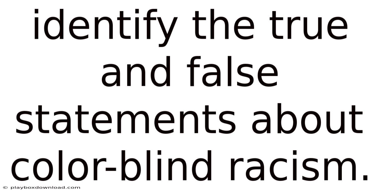 Color‑blind racism is a set of ideologies and practices that claim race no longer matters while, paradoxically, preserving and legitimizing existing racial hierarchies. By insisting that “we all see each other as human beings, not as colors,” proponents mask the structural forces that continue to produce inequality. Understanding true versus false statements about color‑blind racism is essential for anyone who wants to recognize and dismantle covert forms of discrimination. This article unpacks common myths, clarifies factual realities, and equips readers with the analytical tools needed to spot color‑blind rhetoric in everyday discourse Surprisingly effective..