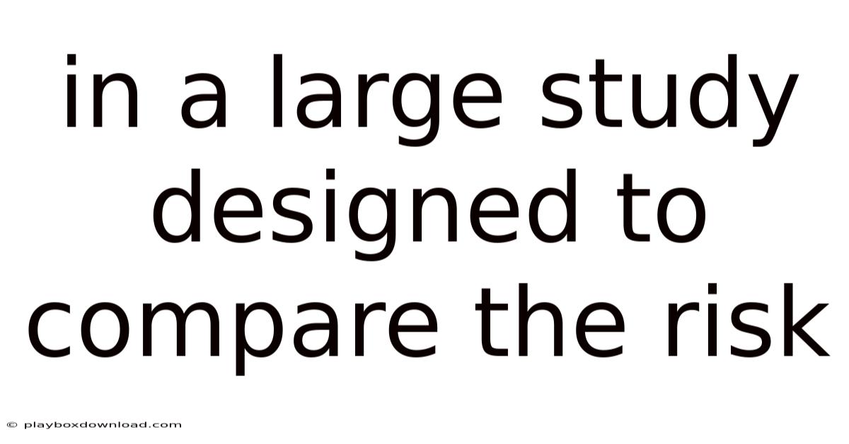A large study designed to compare the risk is typically conducted to evaluate the likelihood of adverse outcomes across different groups or conditions. Think about it: for instance, a study might compare the risk of developing a chronic illness between individuals who consume a particular diet versus those who follow a balanced one. The scope of such research is vast, ranging from medical trials to environmental health assessments. Practically speaking, these studies aim to answer critical questions: How does a specific factor influence risk? Practically speaking, what interventions can reduce risk effectively? That said, are certain populations more vulnerable than others? The key advantage of large-scale studies is their ability to provide statistically significant results, reducing the margin of error and increasing the reliability of findings Nothing fancy..