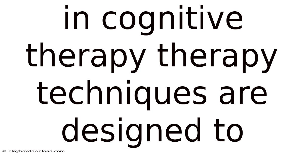 In Cognitive Therapy, Therapy Techniques Are Designed to Address the Interplay Between Thoughts, Emotions, and Behaviors