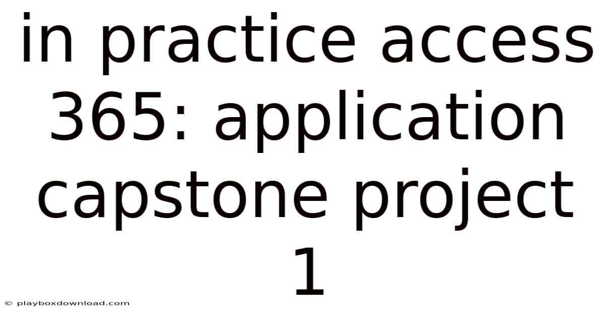 The *In Practice Access 365: Application Capstone Project 1* is more than a classroom exercise; it is a micro‑simulation of what real businesses expect from a junior data‑solution developer. By **planning meticulously**, **building a clean relational model**, **leveraging Access 365’s cloud capabilities**, and **documenting every step**, you not only earn a top grade but also acquire a portfolio piece that showcases your ability to deliver end‑to‑end solutions.
