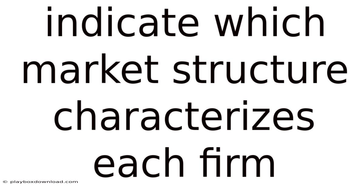 Indicate which market structure characterizes each firm requires analyzing competition levels, product uniqueness, and barriers that shape how businesses operate and price their goods. In economics, every firm belongs to a market structure that determines its power over pricing, its strategies, and its long-term survival. By understanding these structures, students, entrepreneurs, and policymakers can predict behavior, assess efficiency, and design smarter regulations. This article explores the four primary market structures and shows how to identify which one fits a given firm through clear steps, real-world cues, and scientific reasoning Surprisingly effective..