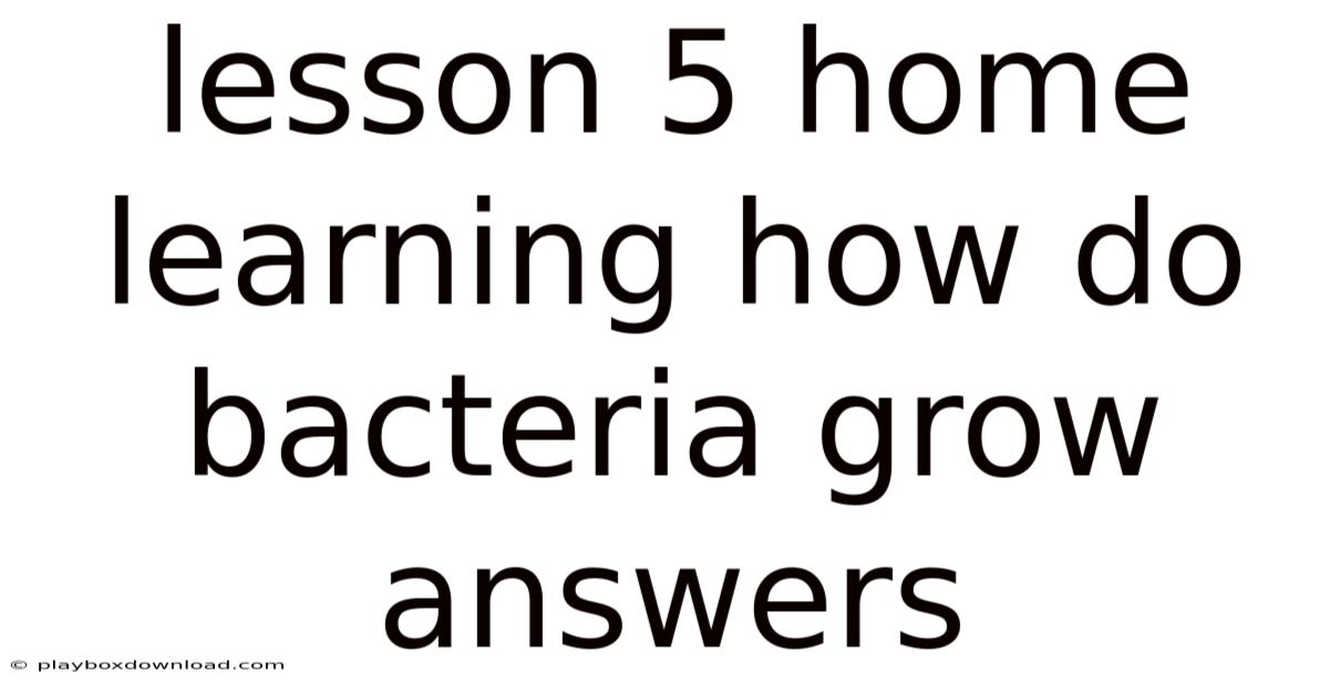 Lesson 5 Home Learning: How Do Bacteria Grow Answers
