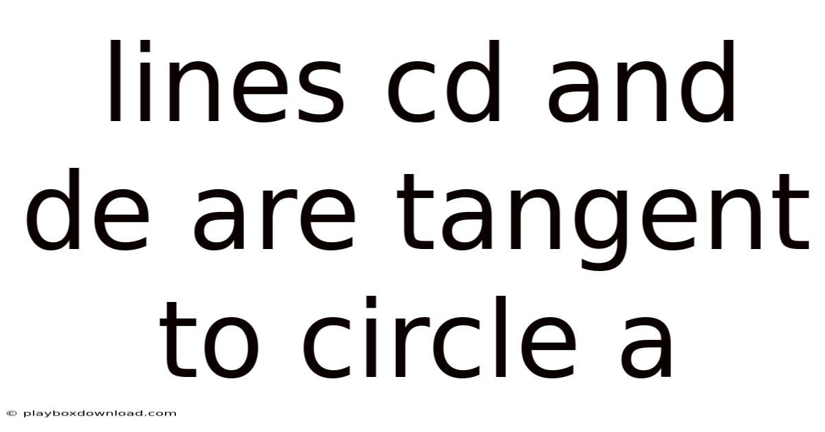 When two distinct lines, CD and DE, both touch the circumference of a circle labeled A at precisely one point each, they are classified as tangent lines. Day to day, this specific arrangement – where two tangents emanate from a common external point D – is a cornerstone concept in circle geometry. On the flip side, the point of tangency for CD is typically labeled C, while the point of tangency for DE is labeled E. The circle itself possesses a center, often denoted as point A. The defining characteristic of a tangent line is its perpendicularity to the radius drawn to the point of contact. That's why, the radius AC must be perpendicular to line CD, and the radius AE must be perpendicular to line DE. This perpendicular relationship is crucial for calculating lengths, angles, and understanding the circle's symmetry. The presence of two tangents from a single external point like D is not merely coincidental; it reveals deeper geometric truths about the circle's symmetry and the power of the point theorem. This article will systematically dissect the properties inherent in this configuration, providing a clear explanation of the geometry involved.