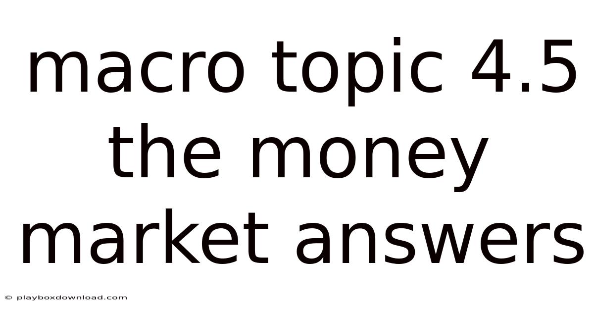 The complex interplay between financial markets and macroeconomic stability forms the backbone of modern economic systems, with the money market serving as a critical conduit through which governments, corporations, and individuals manage liquidity needs while navigating the unpredictable currents of global finance. At its core, the money market encompasses transactions involving short-term debt instruments such as Treasury bills, commercial paper, short-term bonds, and other near-term obligations, all of which function as a conduit for capital allocation within a nation’s economic framework. Now, these instruments operate on a scale that is both immediate and important, enabling entities to swiftly adjust their financial positions in response to shifting demands or uncertainties. Their significance extends beyond mere transactions; they act as the lifeblood of monetary policy, influencing interest rates, inflation dynamics, and overall economic equilibrium. Understanding the nuances of the money market is essential for grasping how economies function, how risks are mitigated, and how swift financial adjustments can either stabilize or destabilize a system. This topic, often referred to as "MACRO TOPIC 4.5 THE MONEY MARKET ANSWERS," delves deeply into these interconnected relationships, examining how the money market’s mechanics intersect with broader economic indicators, policy decisions, and market behaviors. Through this exploration, readers will uncover the foundational role that the money market plays in shaping fiscal and monetary strategies, providing clarity on how short-term financial tools translate into long-term economic outcomes. Such insights are not merely academic; they are practical tools that decision-makers rely upon to manage financial challenges, ensuring that economic systems remain resilient against volatility. In real terms, the complexity inherent to this domain demands careful analysis, requiring a nuanced understanding of both technical aspects and their real-world implications. As such, this article seeks to illuminate the multifaceted relationship between the money market and macroeconomic stability, offering a comprehensive overview that bridges theory with application. By dissecting the various facets of the money market, we aim to equip readers with the knowledge necessary to appreciate its profound influence on the fabric of economies worldwide, making it a cornerstone topic in both academic discourse and practical financial management It's one of those things that adds up..
