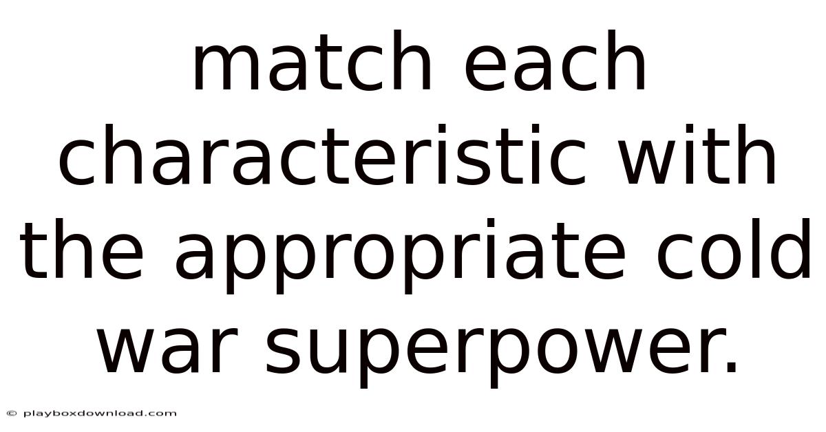 Matching each characteristic with its appropriate superpower reveals a nuanced picture of the Cold War’s duality. Now, these contrasting traits shaped strategies, policies, and global interactions, leaving a legacy that still informs international relations today. On top of that, the Soviet Union, driven by authoritarian communism, centralized planning, and hard power, aimed to expand its ideological reach through military might and state‑controlled resources. That's why the United States, grounded in liberal democracy, market economics, and soft power, sought to spread its model through alliances and cultural influence. Understanding this alignment not only clarifies historical events but also provides a framework for analyzing contemporary geopolitical dynamics Which is the point..