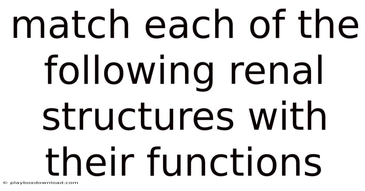 Match Each Of The Following Renal Structures With Their Functions