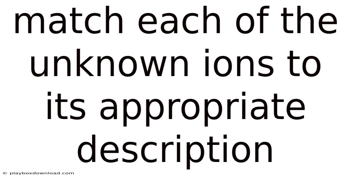 Match Each Of The Unknown Ions To Its Appropriate Description