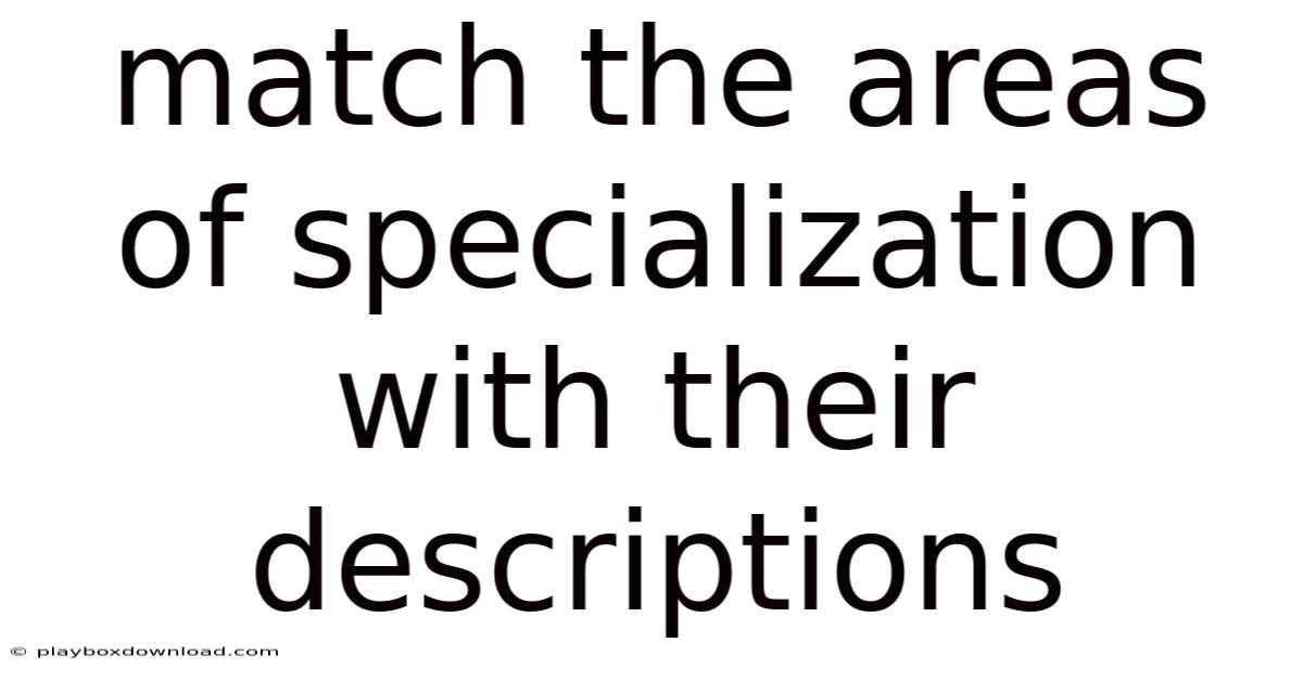 Why is it important to match areas of specialization with their descriptions? Matching specializations with their descriptions helps individuals understand the scope and focus of different fields, enabling them to make informed decisions about education, career paths, and seeking expert assistance.
