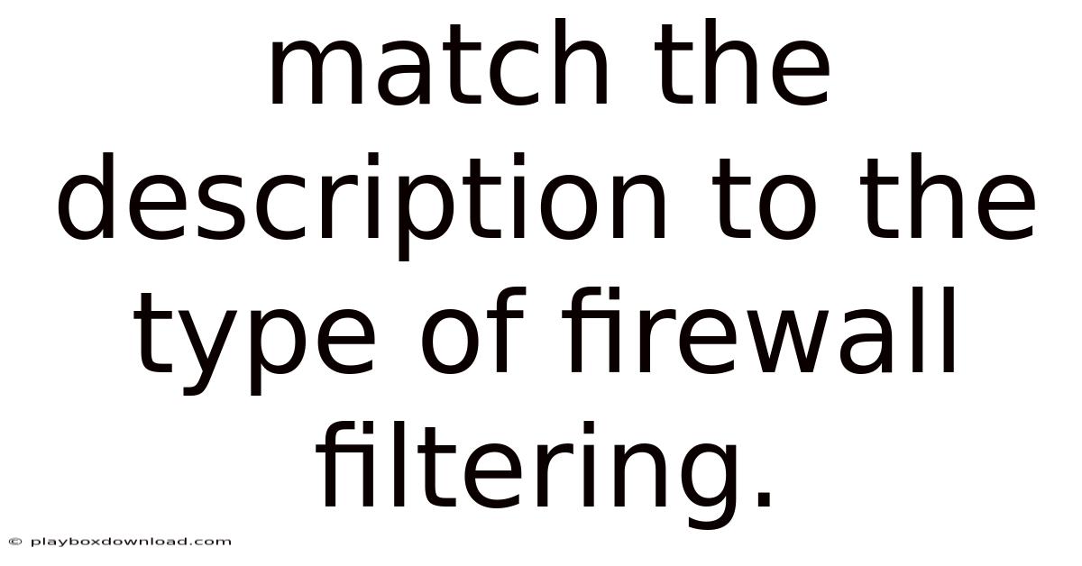Firewall filtering refers to the process of inspecting network traffic and deciding whether to allow or block it based on specific criteria. Different types of firewall filtering employ distinct mechanisms to achieve this, each suited for particular scenarios. Day to day, the primary goal of firewall filtering is to prevent unauthorized access, protect sensitive data, and mitigate risks from malicious activities. Still, these criteria can include IP addresses, port numbers, protocols, or even application-level data. Matching a description to the right type of filtering requires a clear understanding of the security requirements and the capabilities of each method And that's really what it comes down to..