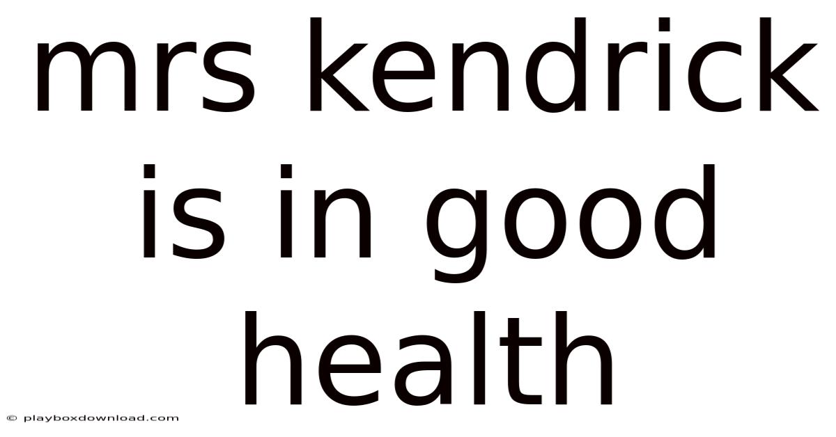Good health extends beyond the absence of disease—it encompasses physical resilience, mental clarity, emotional balance, and social engagement. Mrs. Kendrick embodies this holistic definition through her annual physical examinations showing normal blood pressure (115/75 mmHg), healthy cholesterol levels (LDL below 100 mg/dL), and stable blood glucose readings. Her primary care physician notes that her biological age appears approximately 10 years younger than her chronological age, a phenomenon increasingly recognized as "healthspan" rather than just lifespan. This distinction highlights the importance of quality years over mere quantity And it works..