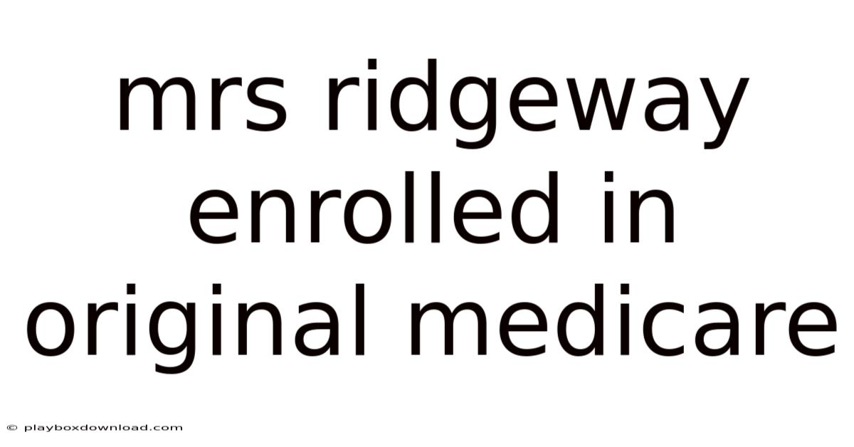 Mrs. Ridgeway Enrolled in Original Medicare: A Guide to Understanding Her Options