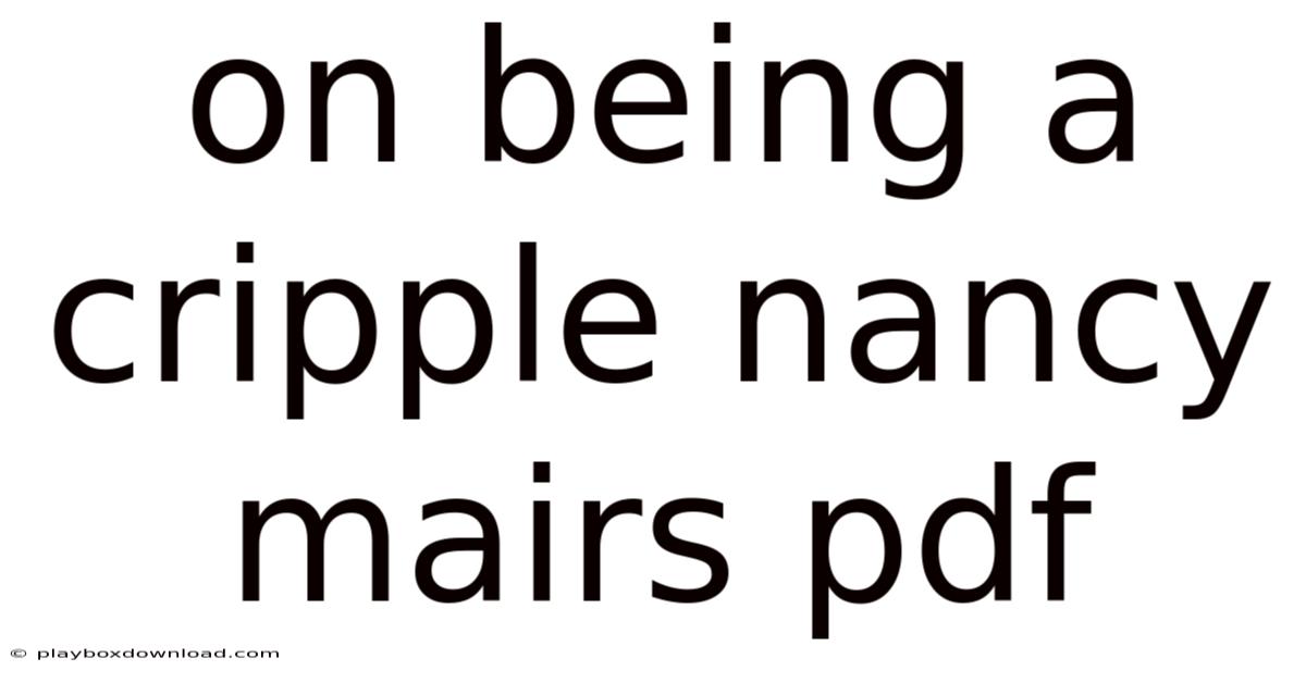 In the realm of literature, few works have the power to not only challenge societal norms but also to offer a personal and profound narrative of self-discovery and resilience. Because of that, nancy Mairs' On Being a Cripple stands as a testament to this, providing readers with an intimate look into the author's life as a quadriplegic and her journey towards independence, identity, and advocacy. This article walks through the essence of Mairs' work, exploring its themes, impact, and relevance right now And it works..
