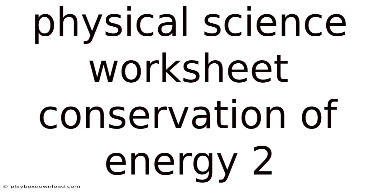 Physical Science Worksheet: Conservation of Energy 2