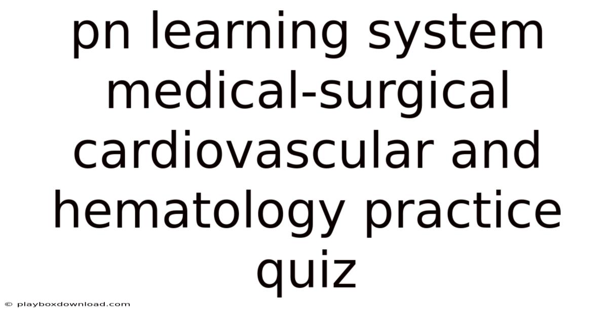 The PN learning system medical-surgical cardiovascular and hematology practice quiz represents one of the most valuable tools available for practical nursing students preparing for exams and clinical practice. These specialized quizzes help bridge the gap between theoretical knowledge and real-world patient care, focusing specifically on the cardiovascular and hematological systems that nurses encounter daily in healthcare settings. Understanding how to effectively use these practice resources can significantly impact your success in nursing education and your future career as a licensed practical nurse That's the whole idea..