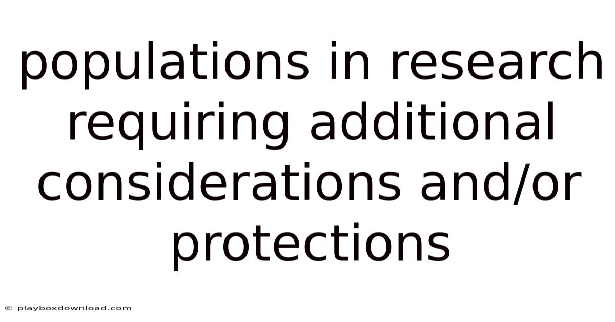 When designing and conducting scientific studies, researchers often focus on methodology, data integrity, and statistical power. Even so, a critical layer of responsibility lies in safeguarding the rights and well‑being of participants who may be more vulnerable to exploitation or harm. These populations in research requiring additional considerations and/or protections include children, pregnant women, prisoners, individuals with cognitive impairments, economically disadvantaged groups, and certain cultural or ethnic minorities. Understanding the ethical, legal, and practical dimensions of working with these groups is essential for responsible science and for maintaining public trust And that's really what it comes down to..
