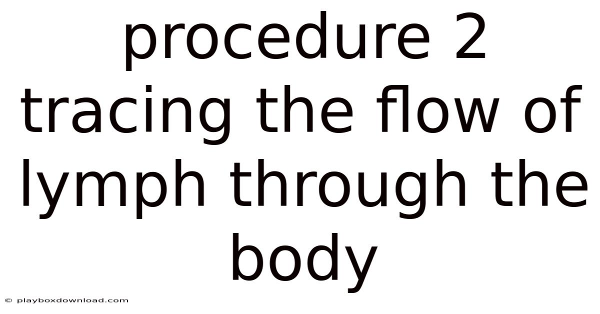 Procedure 2: Tracing the Flow of Lymph Through the Body