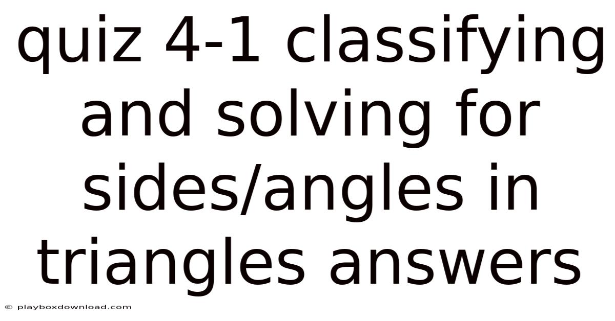 In geometry, triangles are the most fundamental shapes, yet they still hold a surprising amount of depth. Quiz 4‑1 focuses on two key skills: (1) classifying triangles by their sides and angles, and (2) solving for unknown sides or angles using the properties of triangles. Day to day, below is a comprehensive walk‑through of the questions, the correct answers, and the reasoning behind each step. Whether you’re a student reviewing for an exam or a teacher preparing solutions, this guide will clarify every concept in plain language Most people skip this — try not to..