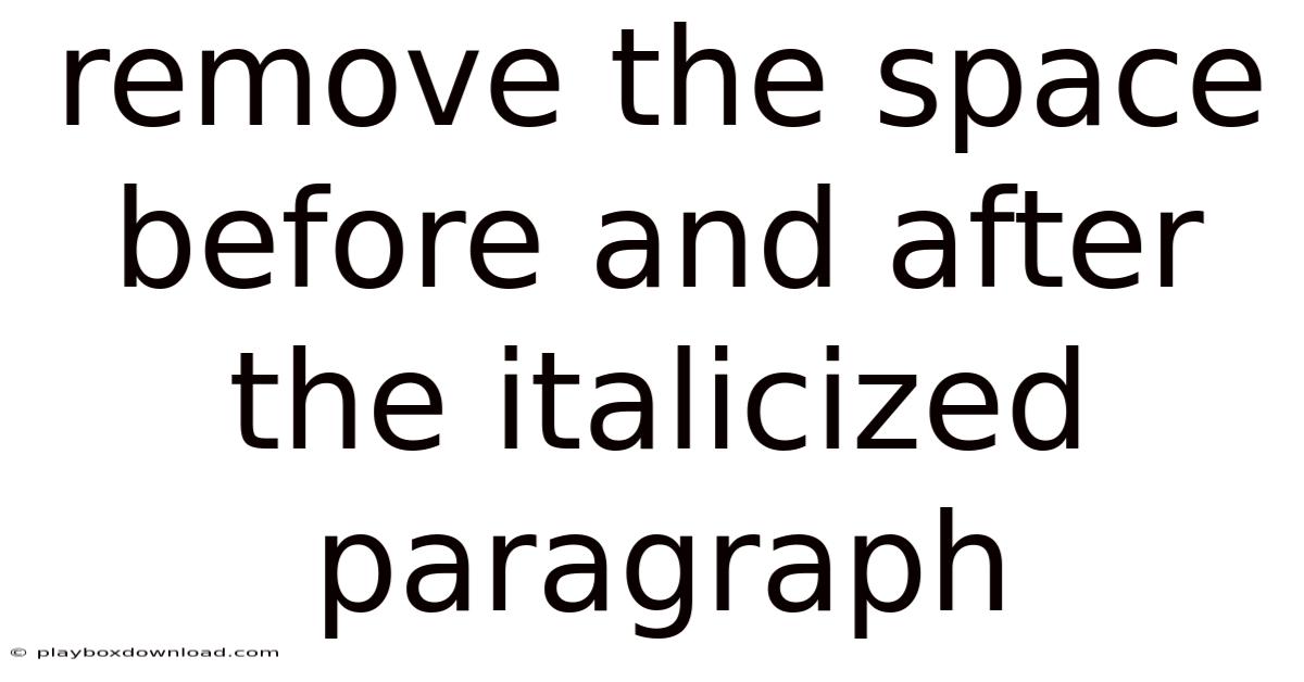 To remove the space before andafter the italicized paragraph in Markdown, you need to understand how the parser treats formatting markers and whitespace. This can lead to unintended gaps in headings, lists, or inline elements, especially when the italicized segment is used inside headings, code blocks, or other structured text. When you wrap text in asterisks or underscores to create italic emphasis, any spaces immediately adjacent to the opening or closing markers become part of the rendered output. By mastering the precise placement of markers and controlling surrounding whitespace, you can see to it that your documents render cleanly and professionally, without the visual clutter of stray spaces. This guide walks you through the underlying mechanics, offers practical techniques, and provides troubleshooting tips so you can confidently remove the space before and after the italicized paragraph in any Markdown file Most people skip this — try not to..