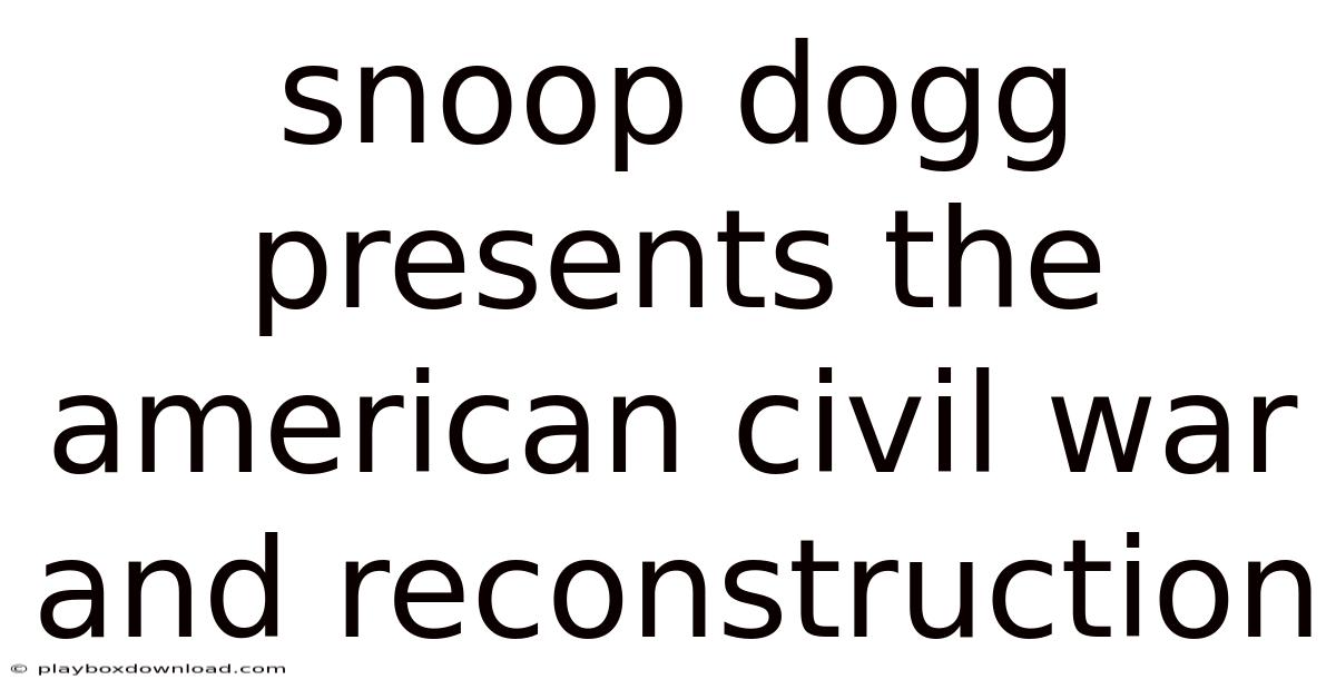 Snoop Dogg Presents The American Civil War And Reconstruction
