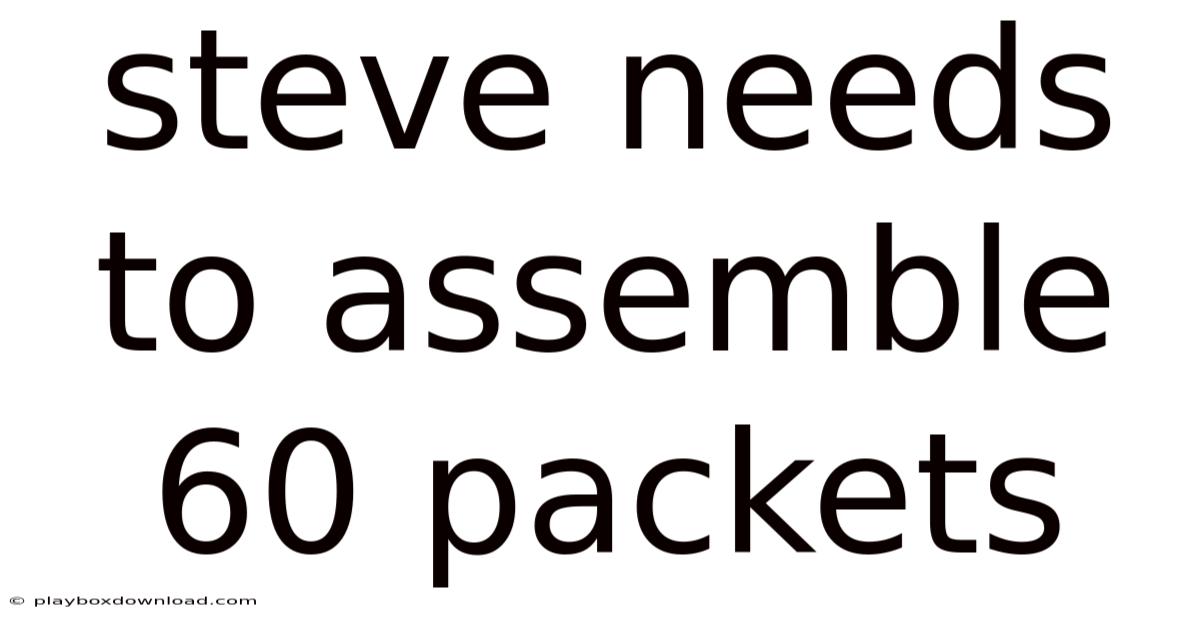 Total ≈ 100 seconds per packet, or 1.But 67 minutes. For 60 packets, Steve needs roughly 100 minutes (1 hour 40 minutes) of pure assembly time, leaving buffer for breaks and unexpected delays.