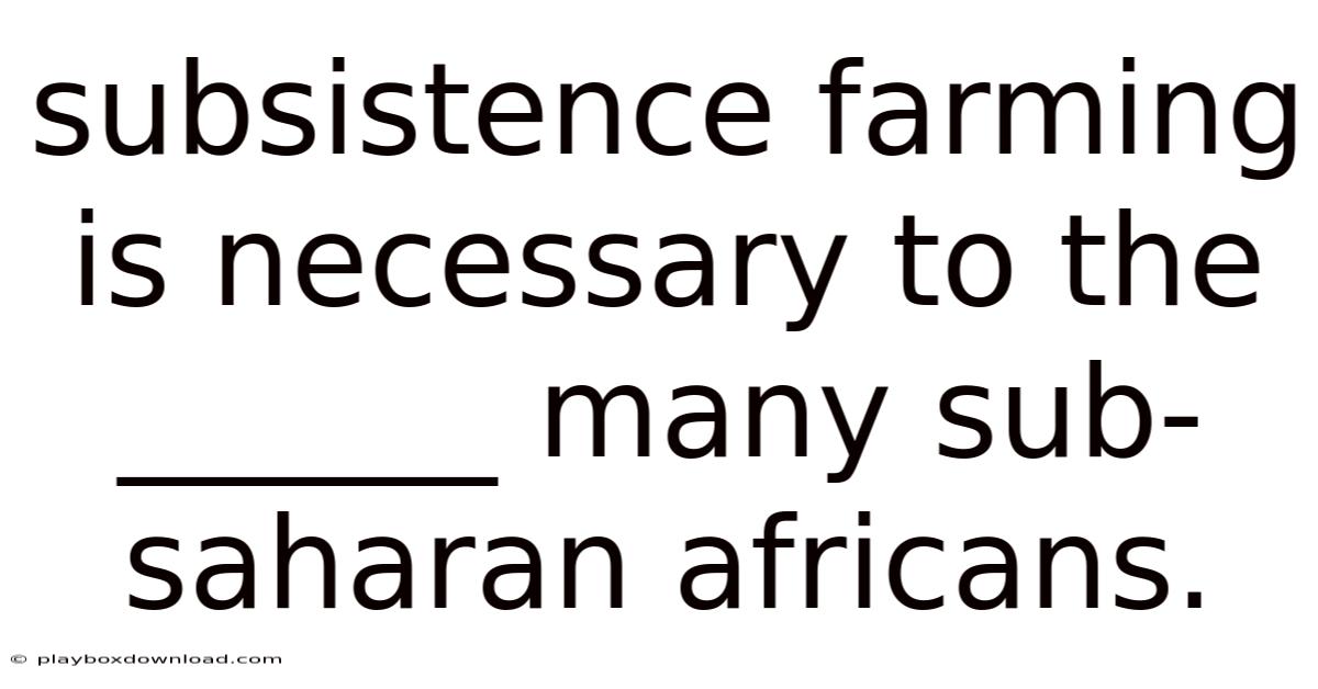 Subsistence Farming is Necessary to the Survival of Many Sub-Saharan Africans