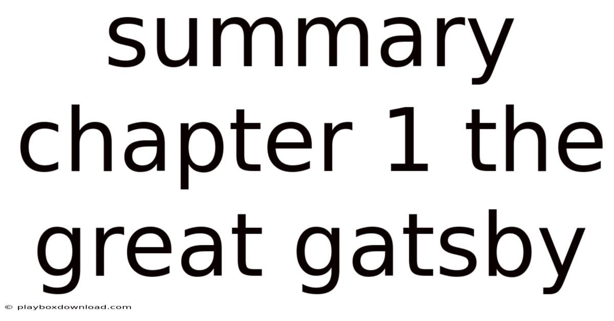 Summary Chapter 1 The Great Gatsby